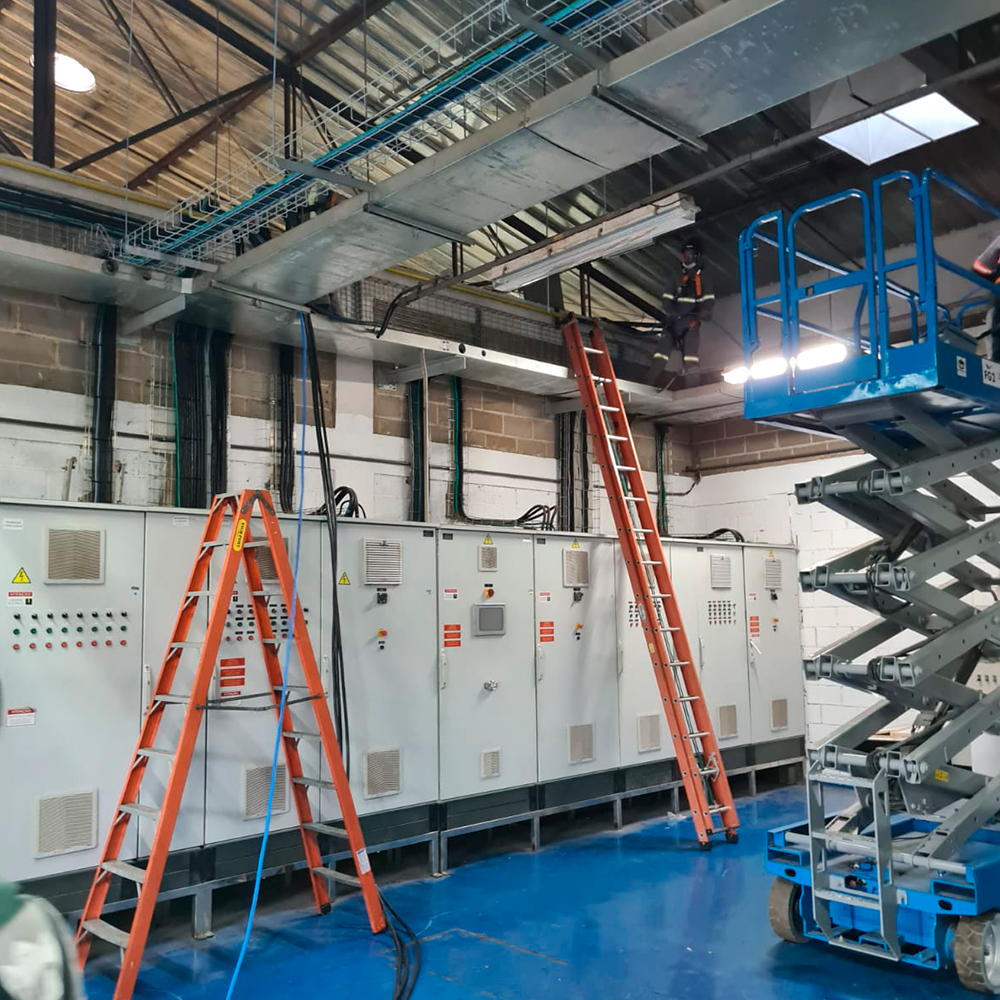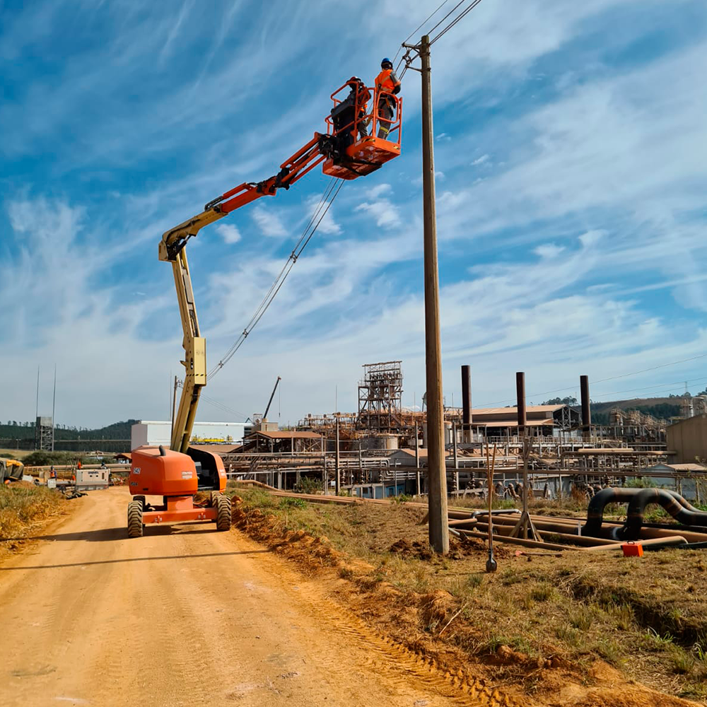Serviços de montagem, lançamento de cabos, quadros elétricos, SPDA, Aterramento, Manutenção em Subestações, Banco de capacitores, Termovisão, Projetos de eficientização e Automação.